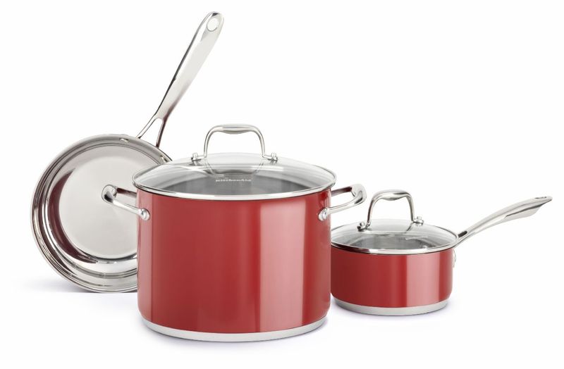 As panelas KitchenAid foram desenvolvidas para auxiliar e suprir todas as necessidades na hora do preparo de alimentos, Inclui: Frigideira 20cm Molheira 1,4L com tampa Caldeirão 7,6L com tampa