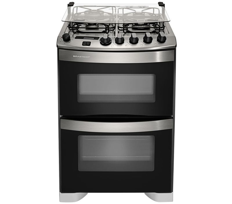 O Fogão de Piso Brastemp Ative com Duplo Forno e 4 bocas tem tudo o que você precisa para o seu dia a dia, Este modelo, além de equipado com forno duplo, um a gás e outro elétrico, também possui Duplachama, Timer Digital, tecnologia de limpeza Cleartec e vidro interno removível,
