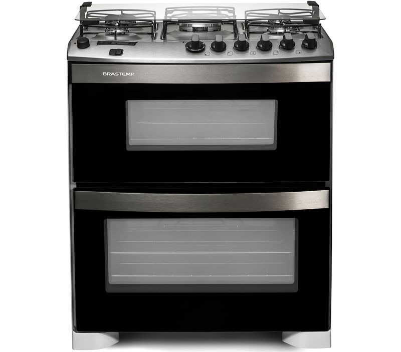 O Fogão Brastemp 5 Bocas DF Quadrichama com Mesa Compartimentada possui dois fornos que preparam receitas impecáveis,
