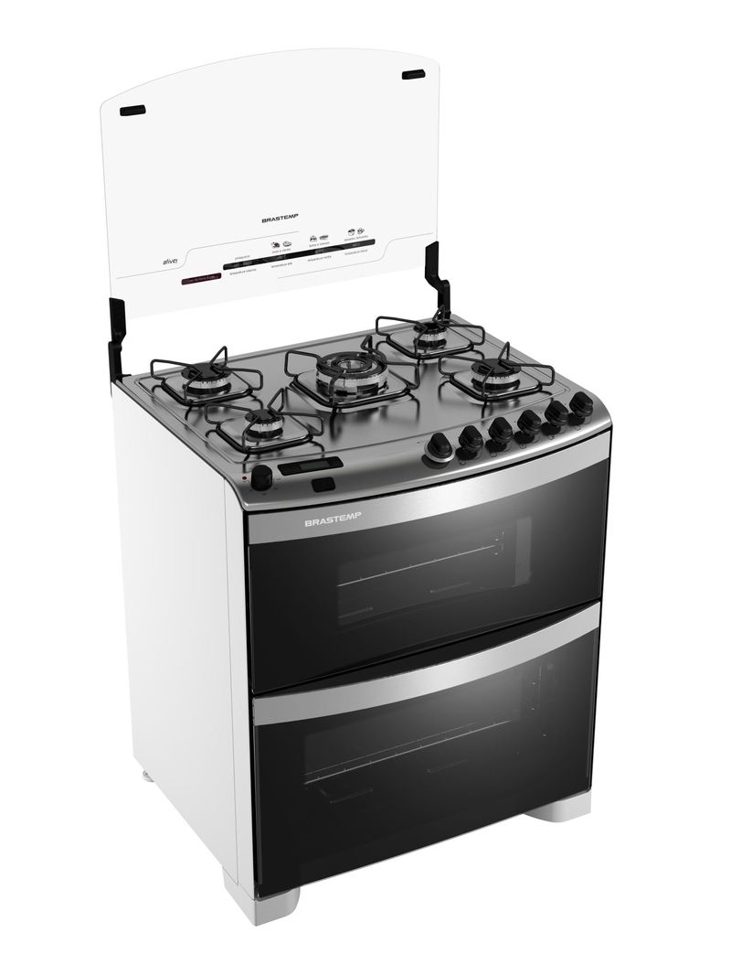 Fogão 5 Bocas Brastemp Piso Ative! Flat Top Duplo Forno - BF275AB