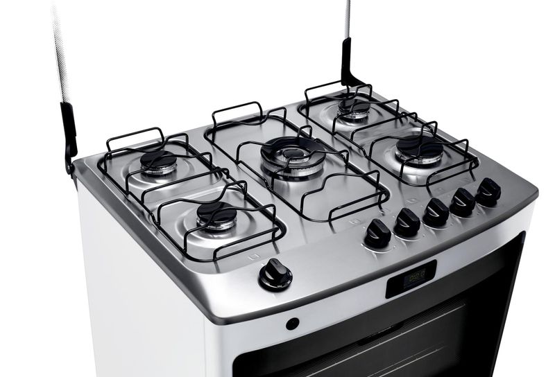 O fogão Consul 5 bocas branco CFS5QAB é a combinação perfeita entre praticidade e inovação para a sua cozinha. Com mesa em inox super resistente, ele conta com dupla chama que garante potência ideal para receitas rápidas e exigentes, além de queimadores bem distribuídos que facilitam o preparo de diferentes pratos ao mesmo tempo. Seu timer digital ajuda no controle preciso do tempo de cozimento, trazendo ainda mais comodidade ao dia a dia. Esse fogão de piso Consul possui grades individuais, botões removíveis e forno espaçoso, que assa de forma uniforme, garantindo resultados impecáveis. Se você busca design moderno aliado a eficiência, o fogão Consul 5 bocas é a escolha ideal.