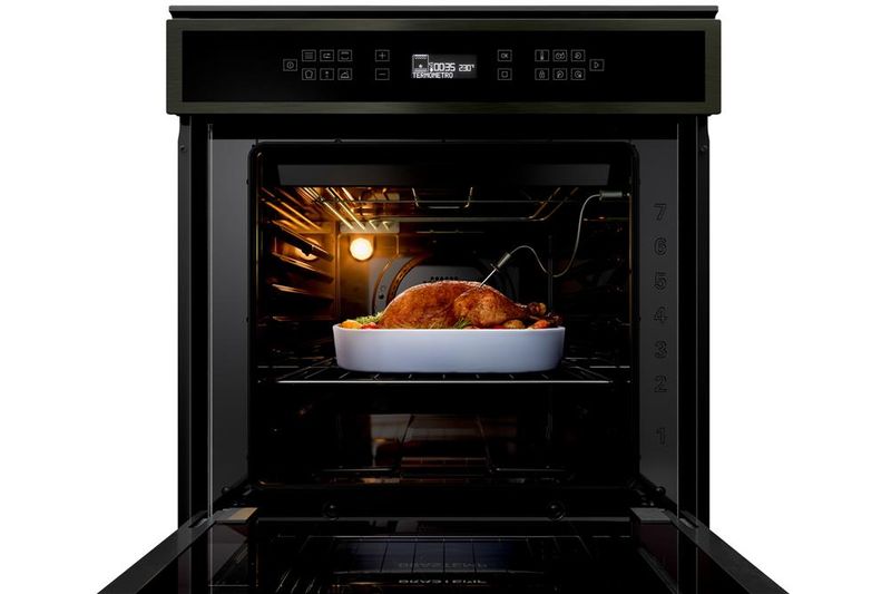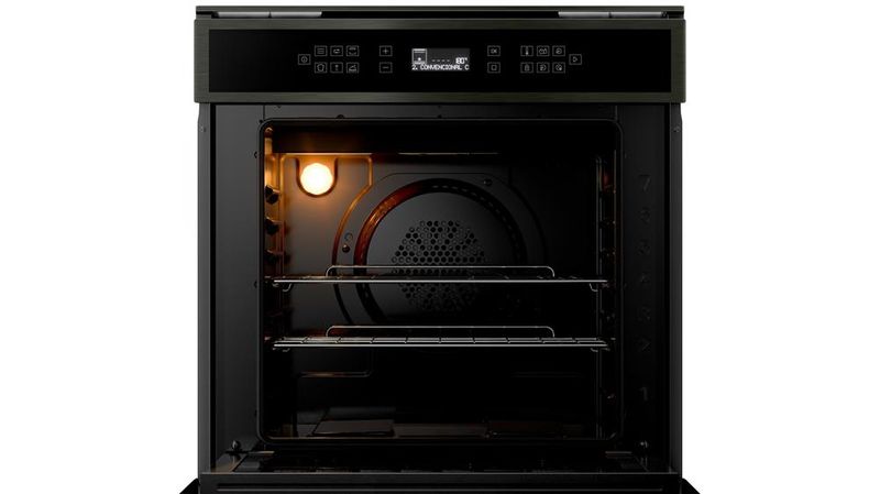Forno de Embutir Elétrico Brastemp Eclipse Collection 84L* tem alta capacidade e conta Termômetro Meat Control e Convenção, que tornam o assamento uniforme e preciso, garantindo carnes suculentas e assadas no ponto certo. A Interface Full Touch traz a melhor experiência de controle, permitindo que todas as funções do painel sejam acionadas através do toque .Linha Brastemp Eclipse Collection com tecnologias funcionais e um design com revestimento na cor Black Inox autêntico e sofisticado. A linha oferece uma versatilidade de produtos modernos, completos e integrados esteticamente para você escolher e montar o conjunto perfeito para a sua cozinha. (*Capacidade bruta)