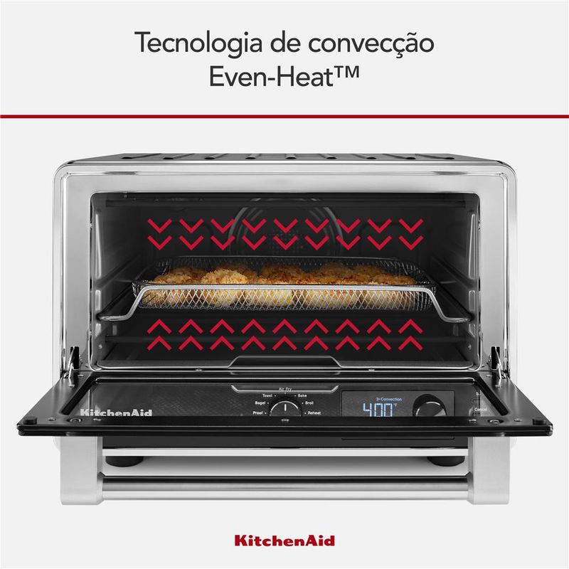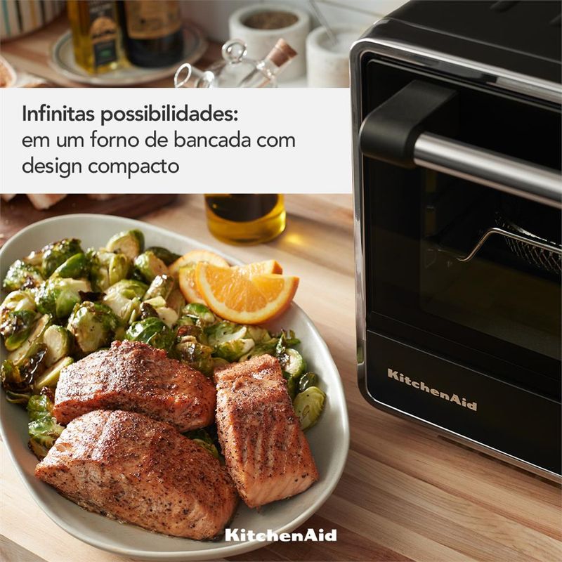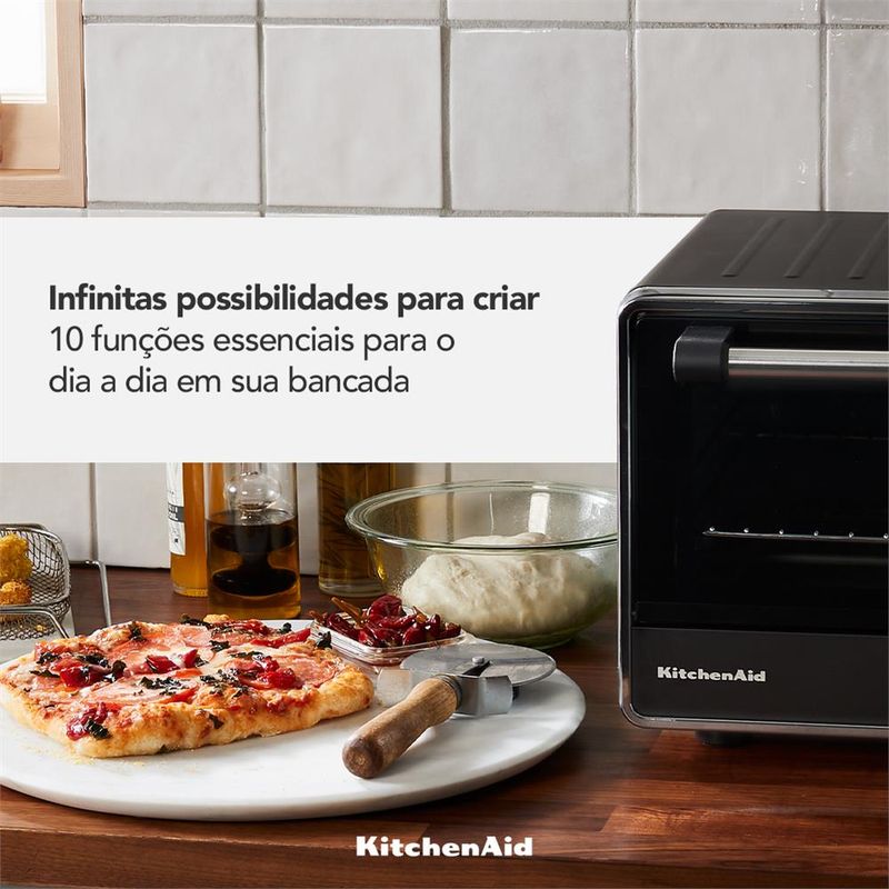 O Forno Multifunções KitchenAid com Air Fryer e Acessório para Pizza foi projetado para oferecer infinitas possibilidades saudáveis e frescas. Com display digital de fácil leitura, cesta de fritura No-Flip e Tecnologia 360° Air Fry é fácil preparar diversos tipos de alimentos, desde batatas fritas até peixes delicados e muito mais. Com 10 funções essenciais e 21 litros de capacidade, é o companheiro ideal para o dia a dia na cozinha.