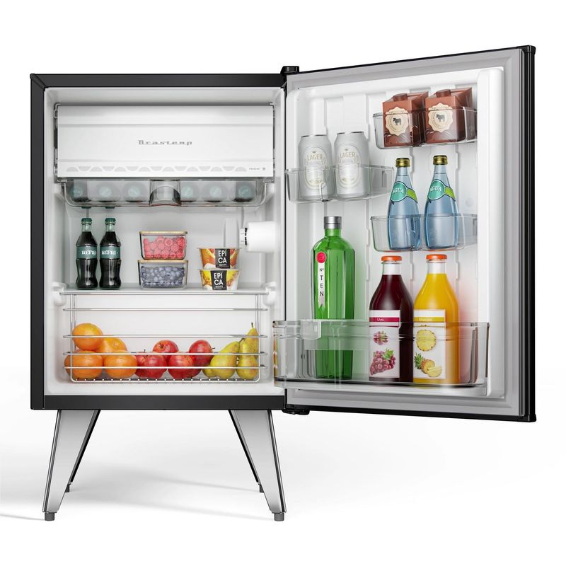 O Frigobar Brastemp Retrô 76 litros transforma qualquer ambiente no seu mundo! O design inconfundível conta com os acabamentos vintage com pés palito, puxadores metálicos e o icônico logo Brastemp dos anos 50, Em 8 opções de cores exclusivas, sejam as clássicas ou as inspiradas nas tendências mais atuais do design, pra você escolher a que representa melhor o seu estilo, Além disso, se surpreenda com a possibilidade de armazenar tudo como você quiser, seja com os compartimentos modulares, cesto cromado ou no freezer - que dá um gelo em qualquer frigobar,