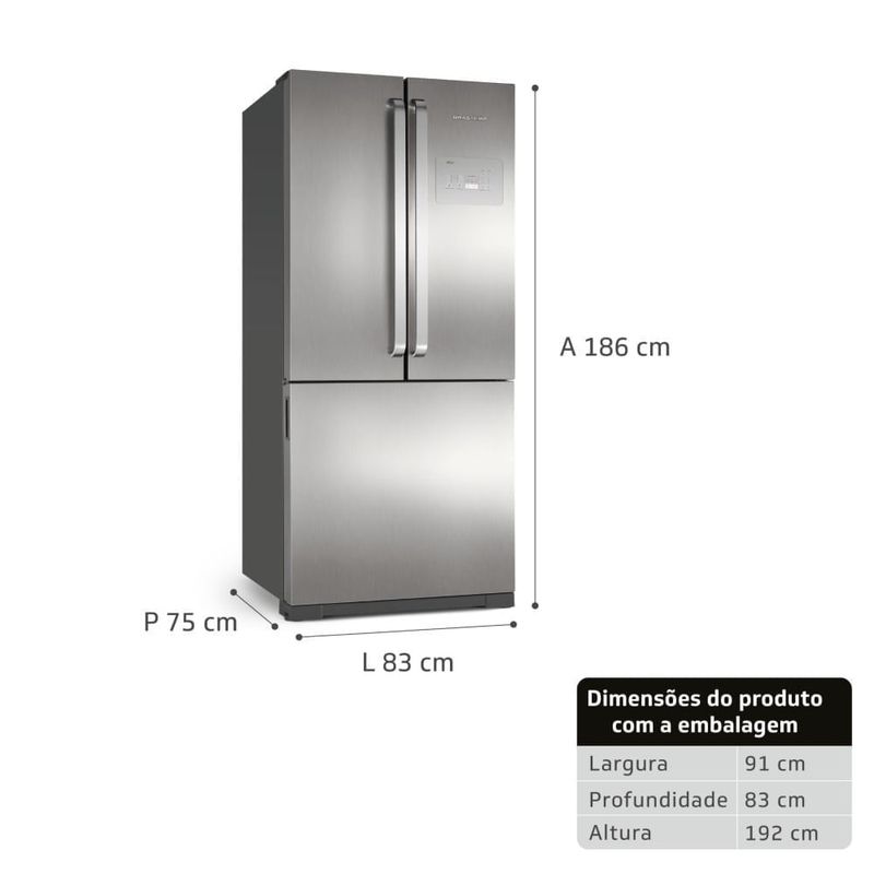 Geladeira Brastemp Frost Free Side Inverse 540 litros cor Inox com Ice Maker - BRO80AK