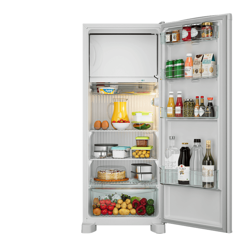 Geladeira Consul Degelo Seco é a maior do segmento* e possui eficiência energética comprovada, economizando até 13% de energia elétrica no ano,** Com 263 litros de capacidade, tem o tamanho ideal para você que busca organização e espaço interno, Além das suas prateleiras removíveis, trazendo mais praticidade na limpeza e organização de itens de diferentes tamanhos, Organize a sua geladeira como quiser!