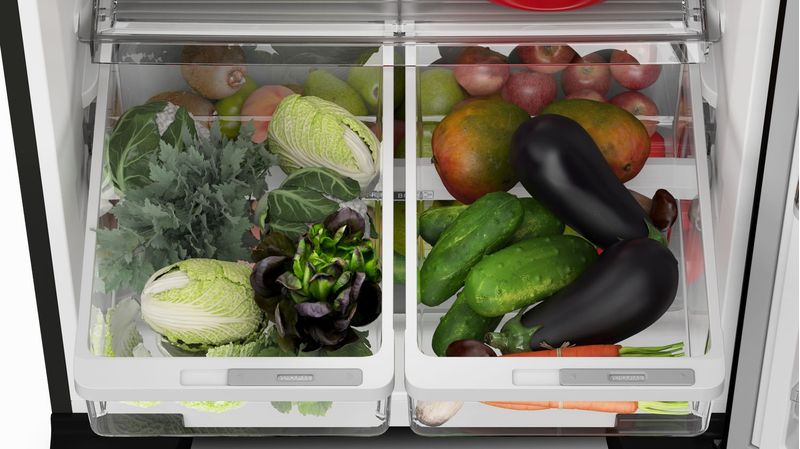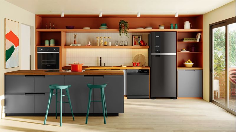 Geladeira Brastemp Frost Free Duplex A+++ 461 litros conta com a tecnologia Turbo Control, que gela alimentos e bebidas em minutos. O modelo conta também com a gaveta Fresh Box, que preserva frutas e legumes frescos por até 15 dias*, além dos compartimentos especiais Salad Box, que mantém todo o frescor das suas folhas por até 7 dias**, afinal salada boa é salada fresca e crocante! *Resultados obtidos a partir de testes internos com tomate, maçã, kiwi, pera, pimentão e chuchu. Linha Brastemp Eclipse Collection, com tecnologias funcionais e um design com revestimento na cor Black Inox autêntico e sofisticado. A linha oferece uma versatilidade de produtos modernos, completos e integrados esteticamente para você escolher e montar o conjunto perfeito para a sua cozinha. **Resultados obtidos a partir de testes internos com alfaces crespa, americana e lisa.