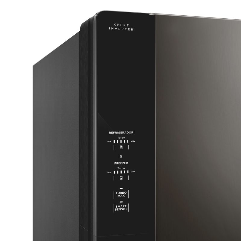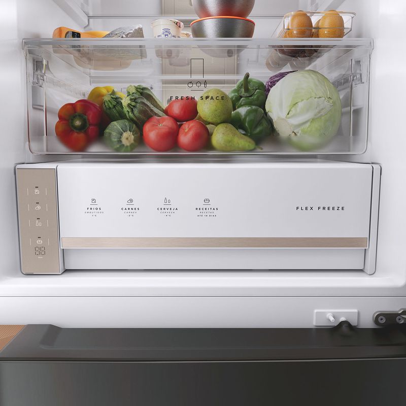 Geladeira Brastemp Frost Free Inverse A com tecnologia Inverter e 477 litros. Com tecnologias que entendem e acompanham o seu ritmo, a Geladeira Inteligente B= Smart mantém a temperatura sempre estável e os seus alimentos frescos por até 44% mais tempo [1]. Assuma o controle com o Flex Freeze, compartimento independente e versátil, com 4 níveis de temperatura: você escolhe a ideal para armazenar o que quiser! Além disso, conta com o Fresh Space com Smart Sensor, que conserva frutas e legumes frescos por até 20 dias[2]. Redefina o seu conceito de geladeira com o novo design Brastemp, mais preservação, eficiência energética e capacidade. É outro mundo
