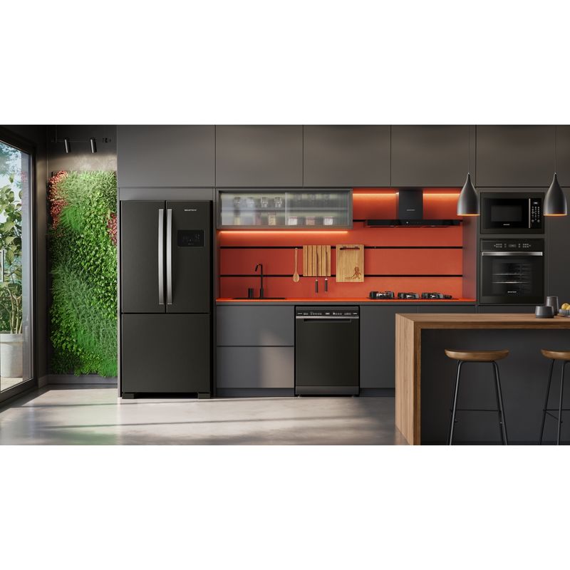 A nova Lava-Louças 15 Serviços Brastemp Eclipse Collection, traz a melhor performance¹ de lavagem que a Brastemp já ofereceu, com mais espaço² e flexibilidade para caber toda a louça do seu dia. Conta com jatos potentes e direcionados que garantem uma limpeza total até mesmo em objetos mais engordurados. Além disso, possui funções inteligentes que economizam água, energia e o seu tempo. Linha Brastemp Eclipse Collection com tecnologias funcionais e um design com revestimento na cor Black Inox autêntico e sofisticado. A linha oferece uma versatilidade de produtos modernos, completos e integrados esteticamente para você escolher e montar o conjunto perfeito para a sua cozinha.