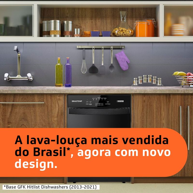 A lava-louças mais vendida do Brasil, Brastemp 8 serviços com design ainda mais moderno é a solução ideal para a praticidade na sua cozinha, otimizando o seu tempo e eliminando as louças sujas mais difíceis, A tecnologia que combina os ativos dos detergentes com jatos de água de alta pressão, remove as sujeiras mais difíceis das panelas mais engorduradas em altas temperaturas, Econômica, a Lava-Louças Brastemp 8 Serviços garante o menor consumo de energia elétrica² e conta com 5x mais economia de água³ por lavagem,