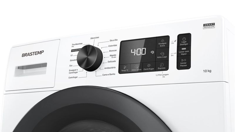 A Lavadora de Abertura Frontal Brastemp 10kg branca conta com um design moderno e ajuda a otimizar sua rotina, Com o Smart Sensor by AI, economize até 40%¹ de água e energia, É a inteligência artificial a favor da eficiência e sustentabilidade, Quer uma lavagem poderosa? Combine o ciclo Tira Manchas Pro com a função Lavar com Vapor, Assim, é possível remover mais de 50 tipos de manchas² e ainda contar com o vapor na remoção das sujeiras mais difíceis, Com a força e confiança do Motor Xpert Inverter, mais eficiência energética e durabilidade no dia a dia com um motor desenvolvido para alta performance e longa vida útil, E para sua tranquilidade, são 10 anos de garantia no motor³, É outra Lavadora, é outro mundo!