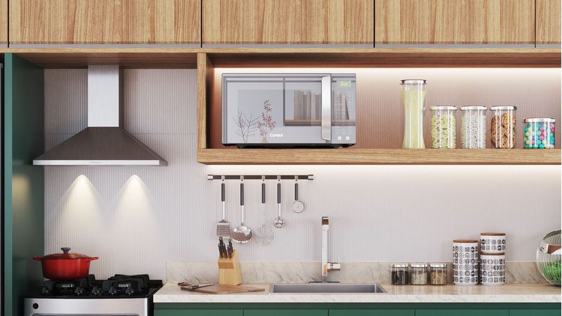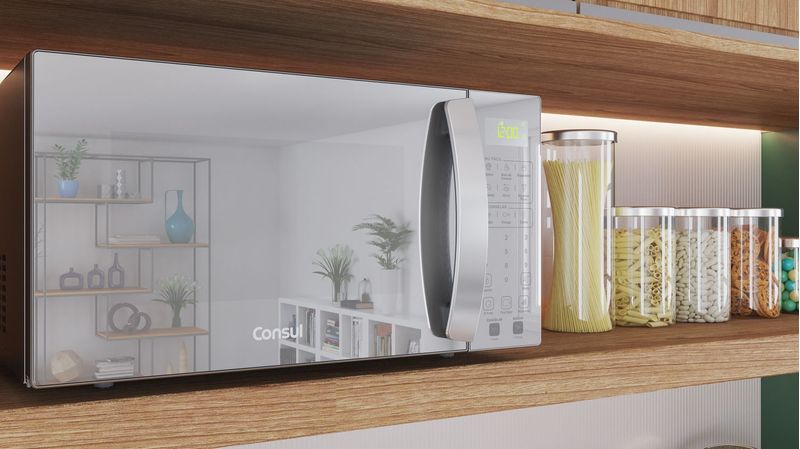 Sua cozinha vai ganhar um toque de modernidade e sua rotina, muito mais praticidade! O Micro-ondas Consul 32 litros com porta espelhada é a combinação perfeita de design e funções bem pensadas para o seu dia a dia. Com o Menu Fácil, preparar seus pratos preferidos fica simples: basta um toque no painel e ele mesmo ajusta o tempo e a potência para um resultado perfeito. Com 32 litros de capacidade, tem espaço de sobra para os pratos da família toda. As funções para descongelar e aquecer descomplicam qualquer refeição, garantindo agilidade na cozinha. É o design sofisticado que você queria com a praticidade que só a Consul oferece para facilitar sua vida. Bem pensado, né?