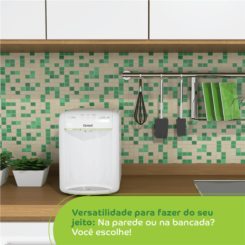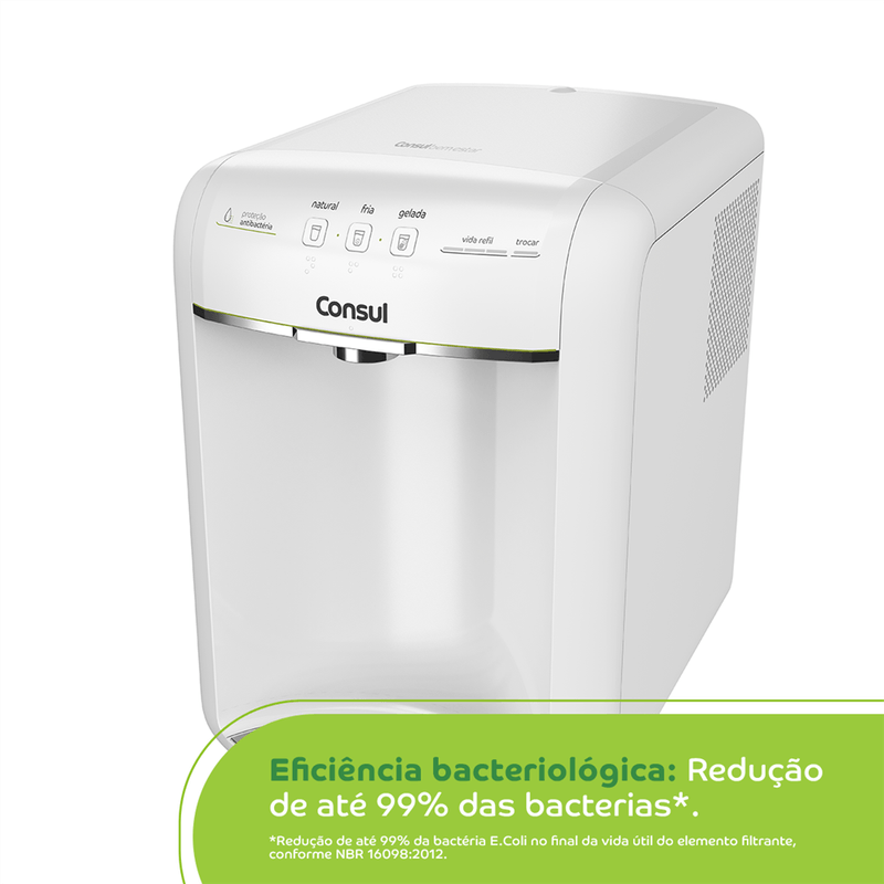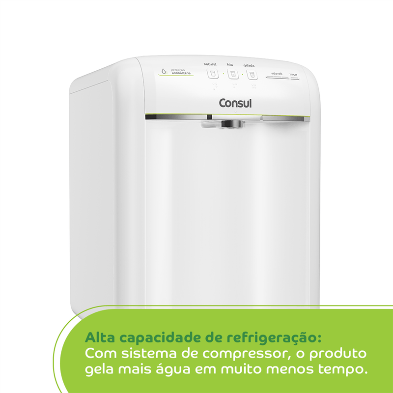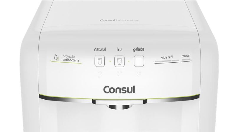 Com sistema de alta capacidade de refrigeração e um painel funcional, o Purificador Consul permite a seleção entre 3 níveis de temperatura, natural, fria ou gelada, além de possuir indicador gradual de vida do refil, te lembrando sobre a hora certa de troca-lo!