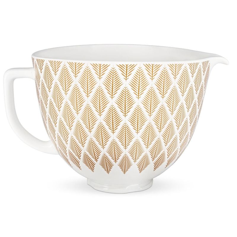 A Tigela de Cerâmica Gold Conifer irá inovar o design de sua batedeira Stand Mixer e trazer versatilidade para seus preparos, Com capacidade para 4,8L, feita de cerâmica e reforçada com titânio, é o único tipo de tigela do portfólio que pode ir diretamente ao forno, além de congelador e microondas, participando de todo o processo de receitas como pães, bolos, suflês e o que mais a criatividade permitir, Prática, possui bico para um derramamento limpo, alça para fácil manuseio e pode ser limpa em lava louças,